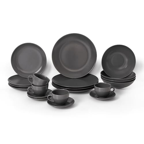 O aparelho de jantar 20 peças Cinza Haus é uma linha de cerâmica ideal para compor a mesa, o conjunto pode servir até 4 pessoas. São 4 Pratos rasos, 4 pratos fundos, 4 pratos de sobremesa, 4 xícaras de chá e 4 pires. Para você que adora proporcionar momentos de elegância no seu almoço ou jantar, você pode adquirir os utensílios corretos que fazem toda diferença, não é mesmo? Além disso você pode contar com toda a praticidade do dia a dia, durante o preparo as peças podem ser levadas ao microondas e na hora de limpar você pode colocar na máquina de lavar louça sem preocupação.