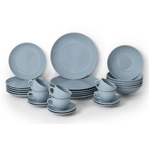 O aparelho de jantar 30 peças Azul Haus é uma linha de cerâmica ideal para compor a mesa ao lado de família e amigos, o conjunto pode servir até 6 pessoas confortavelmente. São 6 Pratos rasos, 6 pratos fundos, 6 pratos de sobremesa, 6 xícaras de chá e 6 pires. Para você que sempre recebe convidados com requinte, ou mesmo no dia a dia, para proporcionar momentos de elegância para a sua família, contar com os utensílios corretos fazem toda diferença, não é mesmo? Além disso você pode contar com toda a praticidade do dia a dia, durante o preparo as peças podem ser levadas ao micro-ondas e na hora de limpar você pode colocar na máquina de lavar louça sem preocupação.