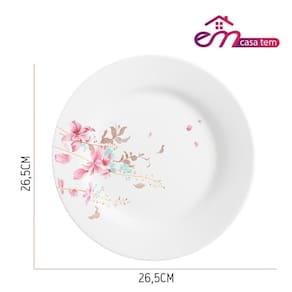 Aparelho de Jantar Jogo 18 Peças Prato Raso Sobremesa e Bowl Flowers Em Casa Tem