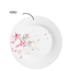Prato Raso de Vidro Branco Flowers Bord 25,5cm Em Casa Tem