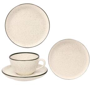 O jogo é composto por 20 peças redondas que são produzidas em cerâmica de altíssima qualidade na cor bege claro com bordas e detalhes marrons, que traz uma sensação de leveza a sua mesa.