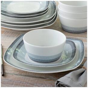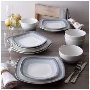 Inclui 12 peças: 4 pratos de jantar de 28 cm, 4 pratos de salada/sobremesa de 21 cm e 4 tigelas de sopa/cereal de 15 cm com capacidade de 740 ml.