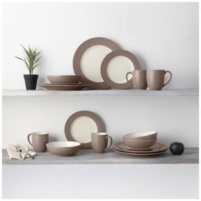 A maioria das peças conta com um esmalte brilhante em tom creme na parte interna, criando um contraste elegante com o exterior fosco. Essa combinação não só valoriza a estética de cada item, mas também proporciona uma luminosidade sutil que realça suas refeições.