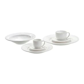 Invista em qualidade e elegância com o aparelho de jantar Roma 42 peçasda Porto Brasil, serve até 6 pessoas em todas as refeições. Na cor branca, os pratos possuem bordas em alto relevo, que levam beleza à sua mesa.