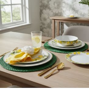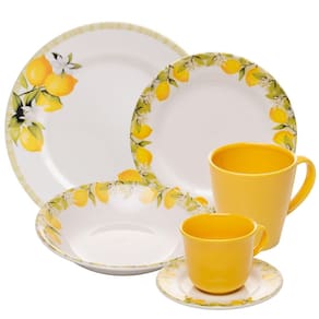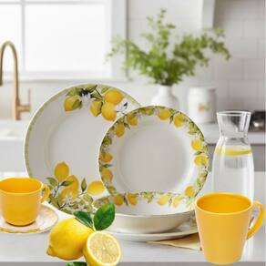 06un Pratos Rasos com 27,5cm diametro.06un Prato Fundo com 21cm diametro e 3,5cm altura06un Prato Sobremesa com 20cm diâmetro06un Xícara para Chá com 180ml06un Caneca com 280ml cadaA linha Limão Siciliano, chega trazendo o clima do verão, vibrante, alegre e com aquele toque artesanal que encanta à primeira vista. Produzido em cerâmica branca de alta resistência, com processo de decoração digital, sobre a base branca, é um produto não refratário, de uso seguro pois não libera substâncias tóxicas.