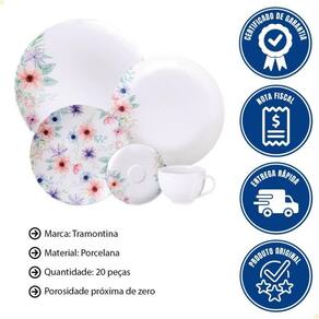 - Surpreenda na hora de receber com o Aparelho de Jantar Tramontina Floratta em Porcelana Decorada 20 Peças.