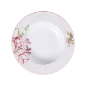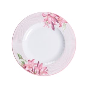 O aparelho de jantar Tramontina em porcelana 30 peças da coleção Poème serve até 6 pessoas, com um design encantador que mistura tons suaves de rosa e detalhes florais. Perfeito para ocasiões especiais, oferece elegância e praticidade, sendo compatível com micro-ondas e lava-louças.