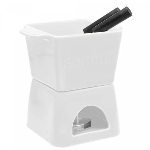 Aparelho de Fondue 6 Peças para Duas Pessoas Quadratto – Wolff Contém: 1 Recipiente 13cm x 9cm x 7cm - 300ml 1 Suporte 9,7cm x 9,7cm x 7cm 2 Garfos 13,3cm x 1cm x 1cm 1 Vela 3,7cm x 3,7cm x 1cm 1 Difusor 6cm x 6cm x 0,1cm Medidas Produto: Altura 13.50cm x Largura 9.80cm x Comprimento 13.00cm Cor: Branco Material: Porcelana
