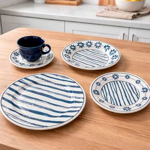 • Dimensões aproximadas: Xícara 7x9cm x Pires 14cm x Prato Sobremesa 2,5x18cm x Prato Fundo 4x21,5cm x Prato Raso 3x24cm