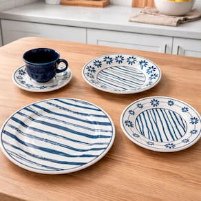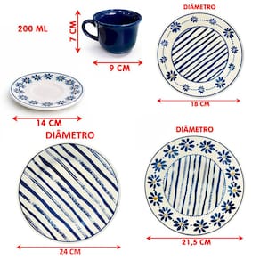 • Dimensões: Xícara 7x9cm x Pires 14cm x Prato Sobremesa 2,5x18cm x Prato Fundo 4x21,5cm x Prato Raso 3x24cm