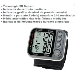 Descrição: O Aparelho de Pressão Digital de Pulso GP450SP Gtech é um dispositivo que mede a pressão arterial e a frequência cardíaca de forma automática e precisa. Ele possui a exclusiva tecnologia 3D Sensor, que reconhece e indica se o aparelho está posicionado na altura ideal para uma medição sem erros. Além disso, ele conta com outras funcionalidades que facilitam o controle da saúde. Funcionalidades: Indicador de arritmia cardíaca, que alerta sobre possíveis alterações no ritmo dos batimentos. Indicador gráfico de nível de pressão arterial, que mostra se os valores estão dentro ou fora da faixa normal. Memória para até dois usuários e 240 resultados, que permite acompanhar a evolução das medidas ao longo do tempo. Média automática das três últimas medições, que oferece uma visão mais abrangente da situação da pressão arterial. Indicador de movimentação durante a medição, que evita resultados imprecisos causados por tremores ou deslocamentos. Fácil de usar e com um design compacto e ergonômica. Funciona com duas pilhas AAA e vem com uma bolsa para transporte e armazenamento. Aprovado pelo INMETRO. É uma ótima opção para quem quer monitorar a pressão arterial de forma prática e segura, sem sair de casa.