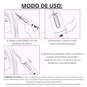 ------------------ CONTEÚDO ------------------ 1x Modelador de Cachos. 1x Pente de Cabelo. 2x Prendedor de Cabelo. 1x Cabo USB. 1x Manual.