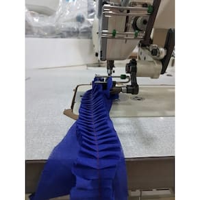 Aparelho para fazer pregas em tapetes (frufru), instalado em máquina reta industrial. Faz a prega e costura o tecido em uma única operação. Permite a padronização das peças com ótima qualidade. Possui regulagem para alterar o tamanho da prega. A máquina pode trabalhar em até 3500 rpm. A instalação deve ser feita por um mecânico profissional.Funções
