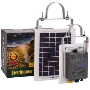 Informações técnicas:Eletrificador operado por baterias e painel solar;Raio de ação: 1.500 metros. Para um choque eficiente na cerca recomendamos no mínimo 150 metros de fio e não ligar mais que 2.500 metros de fio.Energia acumulada: 0,2 joulesEnergia liberada: 0,12 joulesTensão de saída sem carga: 10 kvIntervalo entre pulsos: regulável: 1,6 a 2,5 segundos.Alimentação: painel solar 5 watts com baterias internas de lítio 3,7 v/ 8 ah.Autonomia: com as baterias internas, até 3 dias.Acompanha 4 baterias de lítio internas no produto, com 2 ah cada bateria.Consumo: 2,8 amp./dia.Redução de consumo noturno aumenta o intervalo entre pulsos durante a noite de 1 segundo .Desligamento automático quando a tensão das baterias baixar de 3,2 v, evitandoDanos por descarga profunda.Desviador interno de raios de baixa intensidade. Exige, no mínimo, uma haste para aterramento.Código do produto zebu: 4190-4Código de barras: 7898215044406Ncm: 85437092Dimensões do produto: c206 mm x l246 mm x e18 mmPeso do produto: 1,866 kg