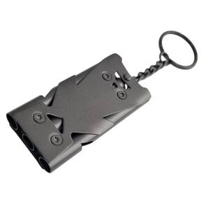 Material: Aço inoxidável resistente à corrosão Design: Compacto e portátil com chaveiro integrado Função: Sinalização em emergências e atividades ao ar livre Dimensões: 6 x 3 cm Peso: 32 g Uso: Camping, trilhas, resgates, esportes ao ar livre