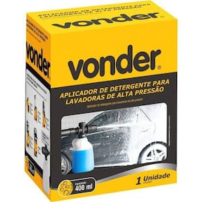 Aplicador De Detergente Lavadoras Alta Pressão 400ml Vonder Aplicações e dicas de uso Possui regulador de volume de espuma. Conhecido como canhão de espuma Indicado para prensar o prensa cabos de 1/16, 3/32, 1/8 e 3/16 Indicado para limpeza automotiva, pois proporciona espuma intensa (Floculação). Utilizado nas lavadoras de alta pressão elétricas VONDER, modelos: LAV 1200, LAV 1400, LAV 1800, LAV 1800I e LAV 2000I Características Técnicas