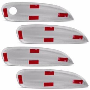 os nossos produtos são apliques colados por cima das peças do veículo e não substituem as. A embalagem contém: - jogo com 4 apliques das capas cromadas das maçanetas - 01 aplique cromado retrovisor do lado direito - 01 aplique cromado retrovisor do lado esquerdo