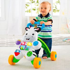 Com 2 maneiras de brincar, esta zebra cresce com o bebê, que começa brincando sentado e depois caminha com essa amiga tão querida! Das primeiras palavras aos primeiros passos, o Apoiador Zebra da Fisher-Price é o tipo de primeiro amigo que você vai querer para o seu bebê! Girar, virar, rolar, encaixar, torcer. Esta zebra é cheia de atividades para bebês que brincam sentados. O bebê pode virar a página do livro ou apertar os botões iluminados para aprender sobre letras e números com canções e frases divertidas. E quando estiver aprendendo a andar, a barra firme e as 4 rodas seguras podem dar apoio aos primeiros passinhos cambaleantes. "e,Continue!"e, Diversas frases, músicas e canções convidam e recompensam o bebê a cada movimento, auxiliando a firmar os passos. Marca: Fisher-Price Idade Recomendada: 06 a 36 meses Material/Composição: Plástico Som/Luzes: Sim Dimensões aprox. da embalagem (AxLxP):11x40x46cm Peso aproximado do produto (Kg): 2,106Kg Alimentação: 2 pilhas alcalinas AA (RL6) de 1,5v (não incluídas) Cor predominante: Verde/Branco Referência do produto: DLH48