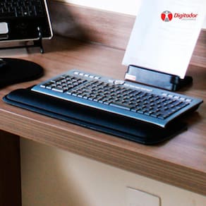 O Apoio ergonômico para teclado KS 651 é uum produto recomendado para o apoio do punho no uso do teclado e mouse, prevenindo as LER DORT . Feito em material macio que oferece uma agradável sensação de descanso. Evita a contração estática durante a digitação. Especificações: Possui material leve, com peso dosado para fixação e aderência a superfície lisa. Desenvolvido em espuma revestida com tecido sintético, flexível, tornando o toque agradável. Possui manta a fim de evitar deslizamento do teclado, foi feito com espuma de poliuretano flexível LB 481454C a base de poliol tipo éter, expandida em bloco auto- extinguível porosa. Com densidade aparente entre 28 e 31 kg/m3 método de teste NBR8537 . Espuma dublada com tecido 100% poliéster nos dois lados do produto. Manta de E.V.A.