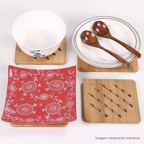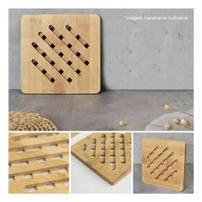 1 Apoio Descanso de Panela Quadrado em Bambu 14cm 112 - Infinite