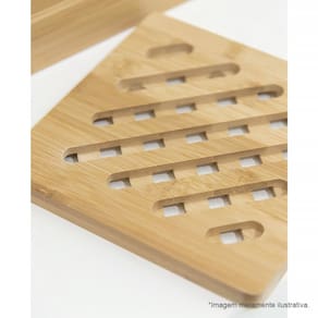 O Descanso de Panela possui detalhes vazado, super delicado com design incrível. Depois de preparar aquela refeição especial, o melhor é poder apoiar as panelas quentes sem preocupação. O Descanso de Panela em bambu é a peça ideal para essa função, capaz de suportar altas temperaturas de panelas, formas, assadeiras, refratários e muito mais. Ele é o apoio perfeito para evitar danos à mesa, toalha, panos de copa, evitando também choques térmicos às panelas quando apoiadas ainda quentes diretamente sobre superfícies frias como granitos, mármores ou vidros. Possui pezinhos em EVA antiderrapante.