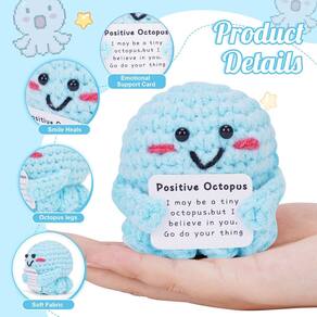 Especificações: Tamanho do produto: 6,5 x 6,5 cm x 6,5 cm Material: Algodão Leite Observação: Devido a diferentes monitores e efeitos de iluminação, a cor real do produto pode ser ligeiramente diferente da cor mostrada na imagem. Obrigado! Devido à medição manual, considere um desvio de medida de 1-2 cm. - ?Adorável polvo de apoio emocional?Você receberá 2 charmosos polvos de suporte emocional de crochê junto com cartões de incentivo edificantes que certamente iluminarão o dia de quem você gosta. Este companheiro encantador é perfeito para surpreender amigos e familiares, tornando-o um gesto atencioso para qualquer pessoa que precise de um pouco de alegria. - Artesanato feito à mão de alta qualidade: nossos animais de crochê positivos são feitos de tecido de veludo de leite premium, garantindo uma sensação macia e luxuosa. Cada polvo é tricotado à mão com cuidado, tornando-os não apenas adoráveis, mas também duráveis. Os materiais de alta qualidade resistem ao desbotamento e mantêm sua forma, proporcionando a você um companheiro reconfortante por muitos anos. - ?Uma dose diária de felicidade?Este polvo engraçado e positivo foi projetado para trazer alegria e inspiração à sua vida. A mensagem doce no cartão serve como um lembrete para permanecer positivo, tornando-o um companheiro ideal tanto durante momentos felizes quanto em momentos difíceis. Sempre que você precisar de um sorriso, este pequeno polvo estará lá para levantar seu ânimo. - ?Decoração encantadora para qualquer espaço?Este lindo polvo de crochê não é apenas um presente maravilhoso; também é uma peça de decoração encantadora! Seu tamanho compacto permite que você o exiba em sua mesa, prateleira ou painel do carro. Coloque-o onde você precisar de um toque de alegria e positividade e deixe sua presença alegre iluminar o ambiente. - ?Presente atencioso para todos?Procurando o presente perfeito? Nosso polvo de crochê de suporte emocional é a escolha ideal para sua namorada, namorado, familiares ou amigos. Este presente único e sincero será apreciado, lembrando-os de sua consideração toda vez que o virem. Espalhe positividade e calor com este delicioso polvo animal de crochê positivo que está destinado a se tornar um companheiro próximo.