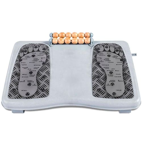 - Contém 26 Pastilhas Magnéticas especialmente posicionadas e mapa da terapia de Reflexologia (partes do corpo refletidas na planta dos pés). O magnetismo é permanente e promove o equilíbrio do fluxo energético do corpo (Obs.: para obter os benefícios do campo magnético e dos massageadores, é necessário o uso diário e descalço pelo período mínimo de 15 minutos); - Plataforma fabricada em polipropileno de alta resistência (42,5 x 29 cm) com superfície antiderrapante e impermeável; - Altura frente da plataforma (parte fixa): 7,3 cm; - Altura traseira da plataforma (regulagens de inclinação): - Nível 1: 7,3 cm - Nível 2: 10 cm - Nível 3: 12 cm