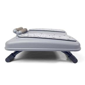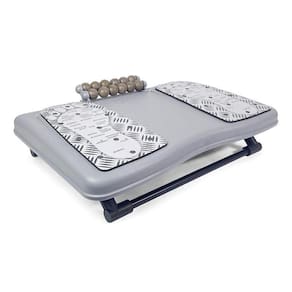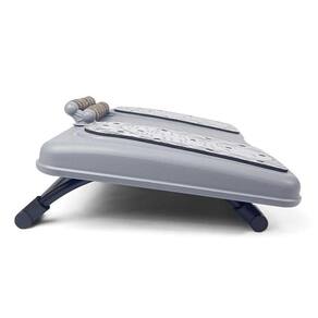 No mais, ajuda a prevenir varizes, inchaço e desconforto nas pernas. Não é recomendável a utilização do apoio para pés com sapatos com salto alto. Para que sua postura seja o mais correta possível, é aconselhado deixar seus pés na mesma angulação/inclinação que a plataforma do apoio para pés está regulada. Plataforma fabricada em polipropileno de alta resistência com superfície antiderrapante e impermeável com sapatas antiderrapantes. Além disso, possui mecanismo de gangorra sem travas para melhor ajuste da inclinação.