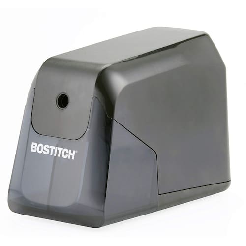 Afiador de lápis com bateria Bostitch Office, vida útil de corte 4 vezes maior, tecnologia Tip Saver, preto (BPS4-BLK) - Tecnologia de corte HHC ? para vida útil 4 vezes maior - Motor potente para operação sem interrupções em uso normal - Design compacto que economiza espaço - Bandeja de aparas fácil de limpar com grande capacidade - Exterior preto durável com acabamento brilhante e fosco