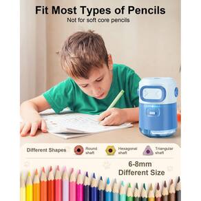 - ?Adequado para vários tamanhos e formas?Este apontador elétrico de grande diâmetro para casa/sala de aula funciona com 99% dos lápis (6-8 mm), manuseando lápis triangulares, hexagonais e redondos com facilidade! Conecte o lápis verticalmente para garantir uma nitidez uniforme (não é adequado para lápis macios).