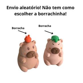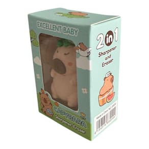 Características: Modelo: Capivara Fofa Função 2 em 1: borracha + apontador Compacta, leve e fácil de transportar Material de qualidade: apaga bem sem manchar e aponta com precisão Ideal para uso escolar, escritório ou para presentear Design irresistível para os amantes de capivaras Ótima opção para kits escolares criativos, lembrancinhas ou para dar aquele toque fofo na sua mesa
