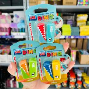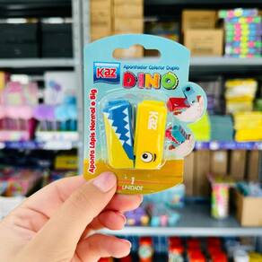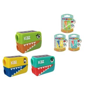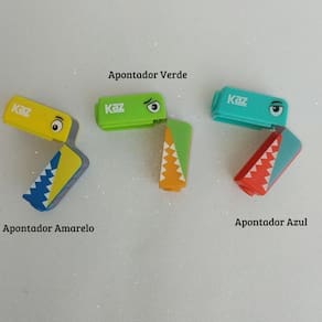 Detalhes do produto: Marca: kaz Modelo: apontador escolar dino kz1935bl Furos: 2 para lápis comum e lápis jumbo Depósito: coletor para resíduos integrados Material: resina termoplástica e lâmina de aço inox Atóxico: seguro para o uso infantil