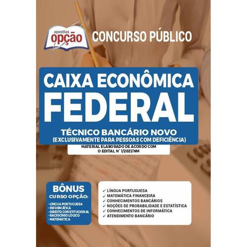 Apostila para Concurso Caixa 2021 para o cargo de Técnico Bancário Exclusivamente para Pessoas Com Deficiência - PCD