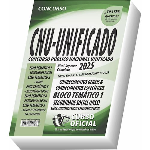 Edição impressa atualizada - elaborada por professores especializados em concursos públicos do curso oficial - são 25 anos de experiência e aprovação dedicados a você, . Cargos: bloco temático 1 - seguridade social - eixo temático 1 - seguridade social - eixo temático 2 - saúde - eixo temático 3 - assistência social - eixo temático 4 - previdência social - eixo temático 5 - saúde e segurança do trabalho Tipo: impressa Páginas: 386 Escolaridade: nível superior Órgão: concurso público nacional unificado ii - governo federal - edital enap nº 114, de 30 de junho de 2025 Conteúdo do material: Conhecimentos gerais & conhecimentos específicos Você receberá ainda: Testes, provas e questões de concursos anteriores; Atualizações, se houver alguma mudança no edital; Prova do último concurso; Edital do concurso. Marca: Não Informado Ean: 7908831304584