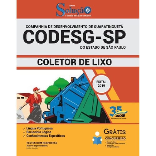 A Apostila para Coletor de Lixo do concurso CODESG 2019 foi rigorosamente elaborada conforme o último edital publicado, o que torna o seu conteúdo completo e atualizado.