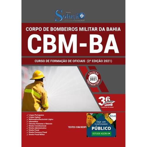 Apostila Concurso CBM BA - Curso de Formação de Oficiais Apostila para Concurso CBM-BA 2021 para o cargo de Curso de Formação de Oficiais 2 Edição Características do Produto - Formato: Impressa Papel A4 - Marca: Editora Solução - Autor: Professores Especializados - Modelo: Livro Brochura - Medidas 21x29cm - Quantidade de Páginas: 504 - Ano de Publicação: 2021 A Apostila Concurso CBM-BA 2021 - Curso de Formação de Oficiais 2 Edição contempla as seguintes matérias: Língua Portuguesa Língua Inglesa Matemática e Raciocínio Lógico Informática Ciências Humanas e Naturais Direito Constitucional; Direito Administrativo Direito Penal Direito Processo Penal Penal Militar Complementar e Exclusivo: Direitos Humanos Direito Administrativo - Legislação Direito Processo Penal - Legislação 504 Páginas Marca: Editora Solucao