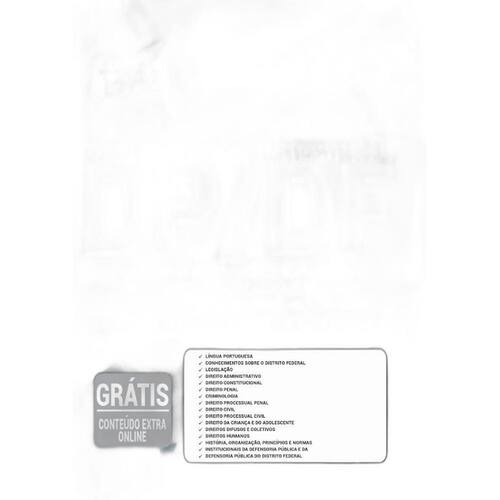 Língua Portuguesa Conhecimentos sobre o Distrito Federal Legislação Direito Administrativo Direito Constitucional Direito Penal Criminologia Direito Processual Penal Direito Civil Direito Processual Civil Direito da Criança e do Adolescente Direito do Consumidor Direitos Difusos e Coletivos Direitos Humanos História, Organização, Princípios e Normas Institucionais da Defensoria Pública e da Defensoria Pública do Distrito Federal