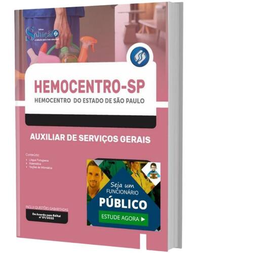 Apostila Concurso HEMOCENTRO SP Auxiliar de Serviços Gerais Apostila para Concurso HEMOCENTRO-SP 2022 para o cargo de Auxiliar de Serviços Gerais Concurso do Hemocentro do Estado de Características do Produto - Formato: Impressa Papel A4 - Marca: Editora Solução - Autor: Professores Especializados - Modelo: Livro Brochura - Medidas 21x29cm - Quantidade de Páginas: 136 - Ano de Publicação: 2022 A Apostila Concurso HEMOCENTRO-SP 2022 - Auxiliar de Serviços Gerais contempla as seguintes matérias: Língua Portuguesa Matemática Noções de Informática 136 Páginas