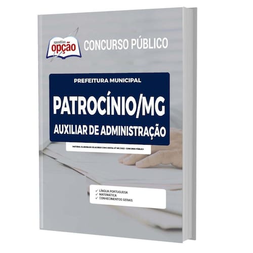 A Apostila Concurso Prefeitura de Patrocínio - MG 2022 - Auxiliar de Administração contempla as seguintes matérias: