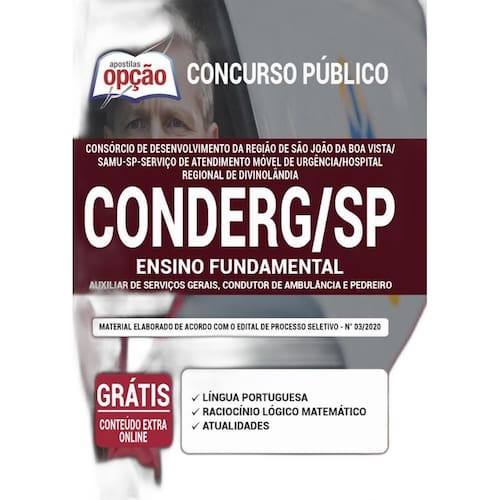 A apostila concurso conderg-sp samu-sp 2020 - ensino fundamental: auxiliar de serviços gerais, condutor de ambulância e pedreiro contempla as seguintes matérias: