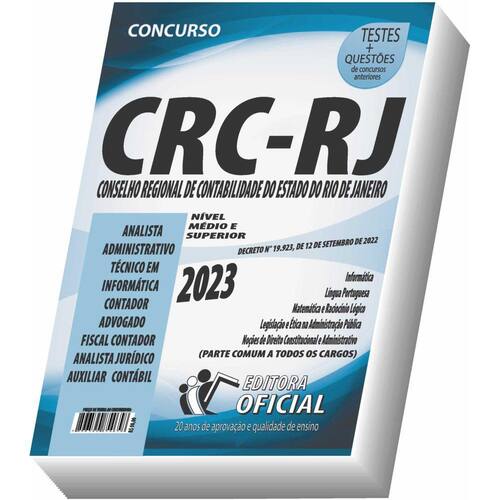 Cargos: TÉCNICO EM INFORMÁTICA / ANALISTA ADMINISTRATIVO / ANALISTA JURÍDICO ADVOGADO / CONTADOR / FISCAL CONTADOR / AUXILIAR CONTÁBIL Tipo: IMPRESSA Páginas: 342 Escolaridade: NÍVEL MÉDIO E SUPERIOR Órgão: CONSELHO REGIONAL DE CONTABILIDADE DO ESTADO DO RIO DE JANEIRO - EDITAL Nº 1/2023
