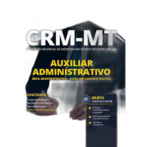 A Apostila Concurso CRM-MT 2020 - Auxiliar Administrativo: Área Administrativa - Auxiliar Administrativo contempla as seguintes matérias: