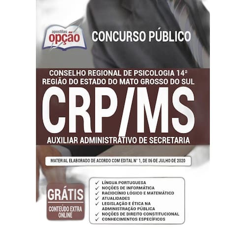 A Apostila Concurso CRP 14ª Região - MS 2020 - Auxiliar Administrativo de Secretaria contempla as seguintes matérias: