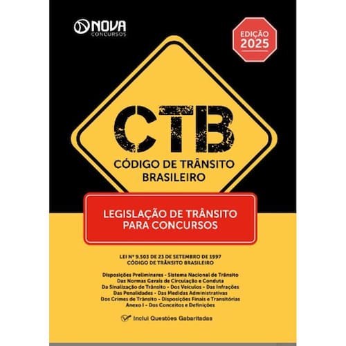 Apostila CTB 2025 - Legislação de Trânsito para Concursos Apostila CTB - Legislação de Trânsito para Concursos -014FV-25-CTB-LEGISLACAO-TRANSITO-IMP Instituição Código de Trânsito Brasileiro Estado Nacional Edição Preparatória Páginas 274 Vantagens ao adquirir este material: Conteúdo essencial e indispensável sobre o tema; Linguagem prática e descomplicada; Dicas, tabelas, fluxogramas, mnemônicos e ilustrações tudo para facilitar a memorização de conceitos; Questões gabaritadas das principais bancas organizadoras do país.
