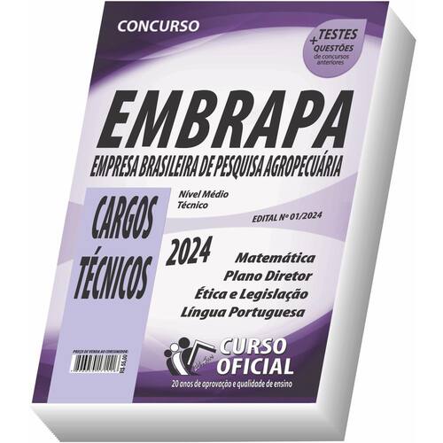 Edição impressa atualizada - elaborada por professores especializados em concursos públicos do curso oficial - são 23 anos de experiência e aprovação dedicados a você, . Cargos: cargos técnicos - área: mecânica - orçamento e finanças - suprimentos manutenção e serviços - laboratório e campos experimentais - gestão da informáção - gestão de pessoas - transferências de tecnologia e comunicação Tipo: impressa Páginas: 201 Escolaridade: nível médio/técnico Órgão: empresa brasileira de pesquisa agropecuária - embrapa - edital 1/2024 Conteúdo do material: Matemática Plano diretor Língua portuguesa Ética e legislação parte comum a todos os cargos Você receberá ainda: Testes, provas e questões de concursos anteriores; Atualizações, se houver alguma mudança no edital; Prova do último concurso; Edital do concurso. Marca: Não Informado Ean: 7908831303457