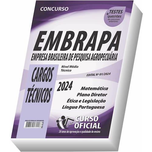 Edição impressa atualizada - elaborada por professores especializados em concursos públicos do curso oficial - são 23 anos de experiência e aprovação dedicados a você, . Cargos: cargos técnicos - área: mecânica - orçamento e finanças - suprimentos manutenção e serviços - laboratório e campos experimentais - gestão da informáção - gestão de pessoas - transferências de tecnologia e comunicação Tipo: impressa Páginas: 201 Escolaridade: nível médio/técnico Órgão: empresa brasileira de pesquisa agropecuária - embrapa - edital 1/2024 Conteúdo do material: Matemática Plano diretor Língua portuguesa Ética e legislação parte comum a todos os cargos Você receberá ainda: Testes, provas e questões de concursos anteriores; Atualizações, se houver alguma mudança no edital; Prova do último concurso; Edital do concurso.