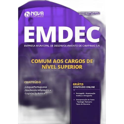 A Apostila para Cargos de Nível Superior do concurso EMDEC - SP 2019 foi rigorosamente elaborada conforme o último edital publicado, o que torna o seu conteúdo completo e atualizado.