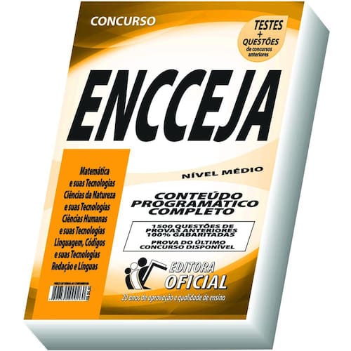 Edição Impressa Atualizada - Elaborada por professores especializados em concursos Públicos do Curso Oficial - São 20 anos de experiência e aprovação dedicados a você, candidato.Tipo: IMPRESSAPáginas: 528Órgão: Exame Nacional para Certificação de Competências de Jovens e Adultos - MATERIAL DIDÁTICO PREPARATÓRIOConteúdo do Material: Linguagem, Códigos e suas TecnologiasCiências da Natureza e suas Tecnologias Ciências Humanas e suas TecnologiasMatemática e suas TecnologiasVocê receberá ainda:Testes, provas e questões de concursos anteriores;Atualizações, se houver alguma mudança no edital;Prova do último concurso;Edital do Concurso.