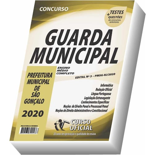 Edição impressa atualizada - elaborada por professores especializados em concursos públicos do curso oficial - são 20 anos de experiência e aprovação dedicados a você, . Cargo: guarda municipal Tipo: impressa Páginas: 510 Escolaridade: ensino médio completo Órgão: estado do rio de janeiro - município de são gonçalo-rj - edital nº 003/pmsg/2020 Conteúdo do material: Informática Língua portuguesa Noções de direito penal Legislação extravagante Conhecimentos específicos Noções de direito administrativo Noções de direito constitucional Noções de direito processual penal Você receberá ainda: Testes, provas e questões de concursos anteriores; Atualizações, se houver alguma mudança no edital; Prova do último concurso; Edital do concurso