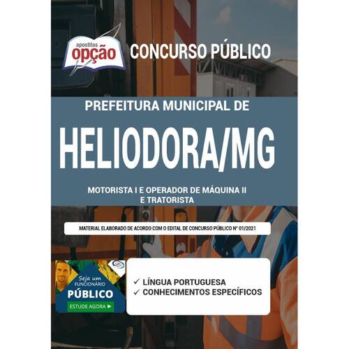Apostila Heliodora MG - Operador de Máquina 2 e Tratorista Apostila para Concurso Prefeitura de Heliodora - MG 2021 para o cargo de Motorista I e Operador de Máquina II e Tratorista Você pode imaginar como a sua Vida vai Melhorar depois que você Conquistar a Aprovação neste Concurso Púbico? Pois é, se você se preparar, será Aprovado a e se tornará um a Funcionário a Público a e, isso lhe trará a tão sonhada Estabilidade Profissional e Financeira que tantos almejam. Esta Apostila lhe ajudará nesta caminhada, pois, ela é elaborada conforme o Edital e por Professores especialistas em cada matéria e na banca do concurso. O Produto é Novo, a , com e Direito da Fábrica pra você. Características do Produto - Formato: Impressa Papel A4 - Marca: Apostilas Opção - Autor: Professores Especializados - Modelo: Livro Brochura - Medidas 21x29cm - Quantidade de Páginas: 220 - Ano de Publicação: 2021 A Apostila Concurso Prefeitura de Heliodora - MG 2021 - Motorista I e Operador de Máquina II e Tratorista contempla as seguintes matérias: Língua Portuguesa Conhecimentos Específicos 220 Páginas Marca: Não Informado Ean: 7908403506330